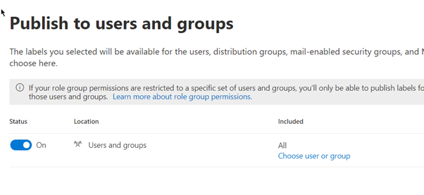 Under the publish to users and groups, select the users you want to receive the labels.