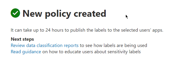 After the policy has been published, please note it can take up to 24 hours for the users to see the labels