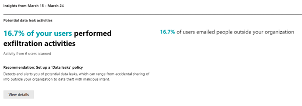 Microsoft Purview Insider Risk Management also comes in handy in understanding what your users are doing with organization data. The Insider Risk analytics service runs in your environment and analyzes potential malicious activities from how your users are interacting with organization data. This is essential in assessing potential data exfiltration vulnerabilities within the organisation.
